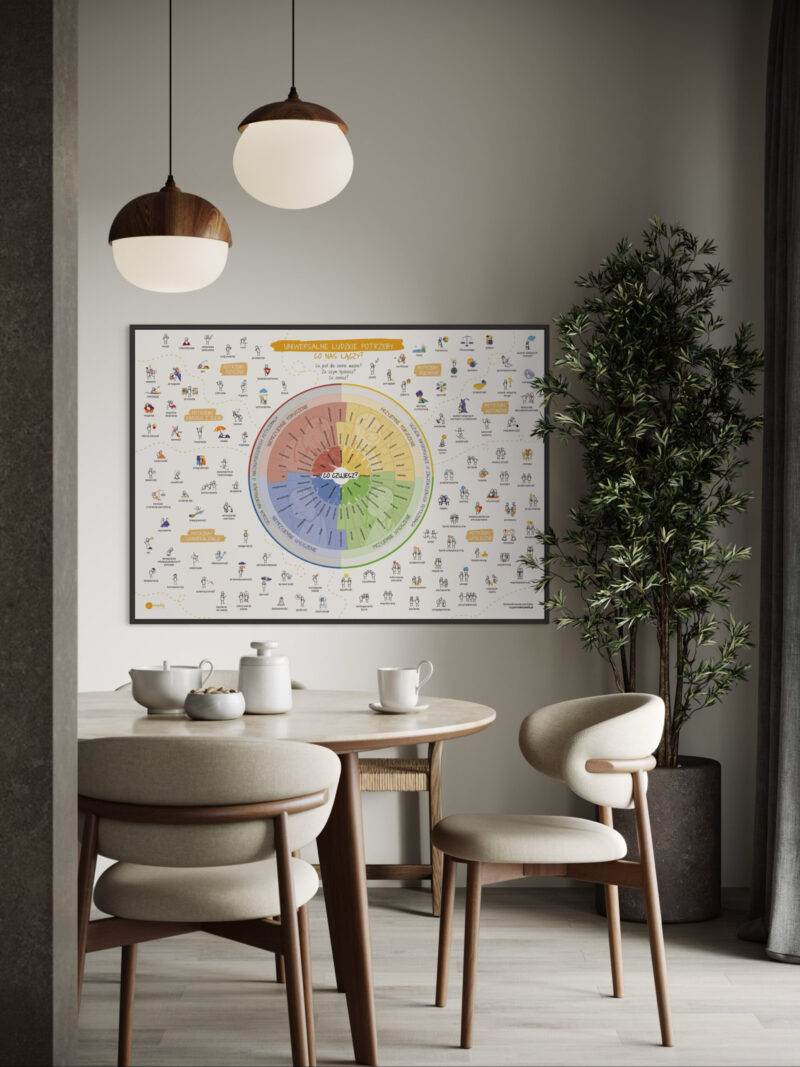 Duży, przejrzysty plakat zawieszony na ścianie w Twoim domu, biurze czy gabinecie. Zawsze na widoku, zawsze gotowy, żeby pomóc Ci zatrzymać się na chwilę i zadać sobie pytanie: „Co teraz czuję?”